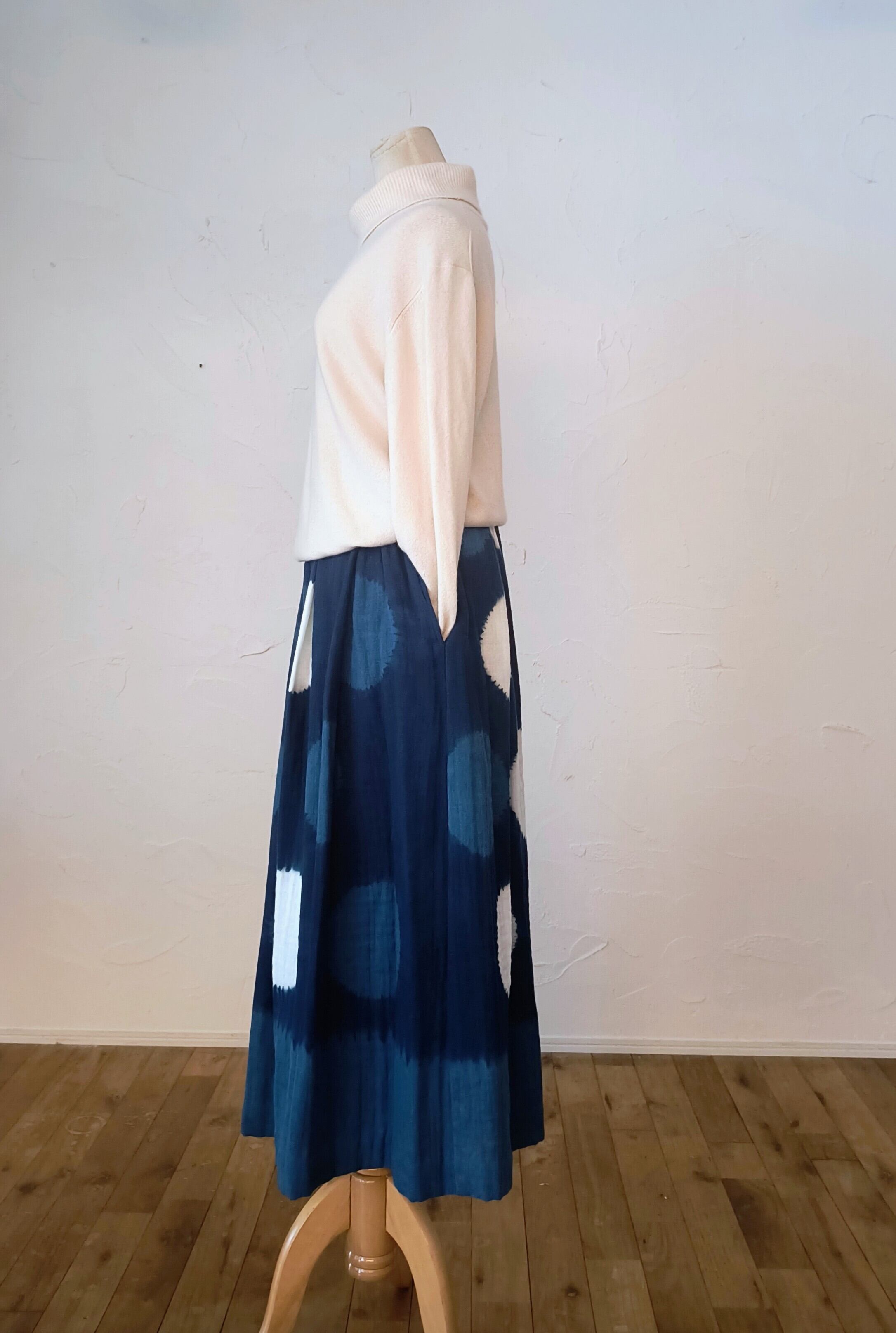 三重GAUZEアンブレラスカート 水玉(blue&white) ロング丈